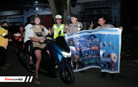 Kegiatan yang dimulai sekitar pukul 03.00 WITA itu dipimpin langsung oleh Kasat PJR Ditlantas Polda Sulbar, Kompol Adriyan Fredrick Kopong, S.E., S.H. sebagai bentuk kepedulian kepada masyarakat sekaligus mempererat silaturahmi dengan para pengemudi ojol yang tetap bekerja di bulan suci Ramadan.