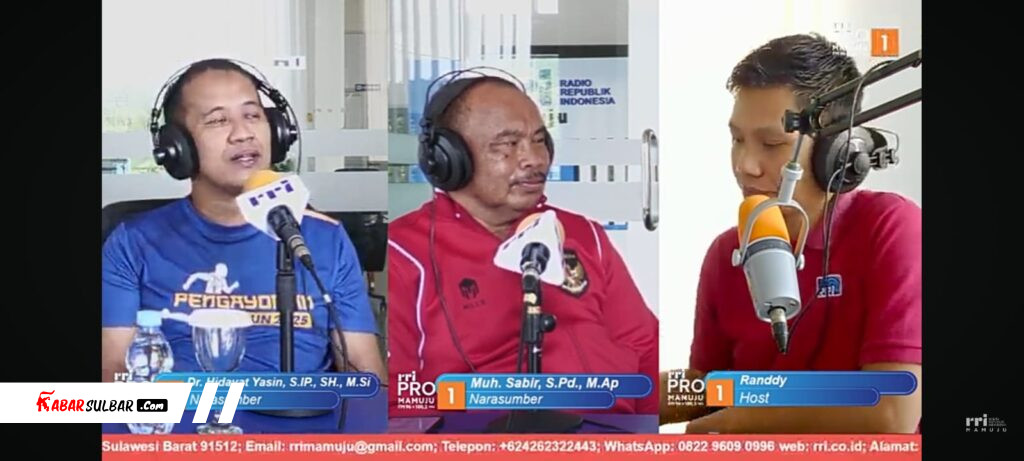 Hadir sebagai narasumber, Kepala Bidang Pengembangan dan Pembudayaan Olahraga Provinsi Sulawesi Barat, Muh Sabir, serta Kepala Divisi Pelayanan Hukum Kanwil Kemenkum Sulbar, Hidayat. Dialog dipandu host Randdy.