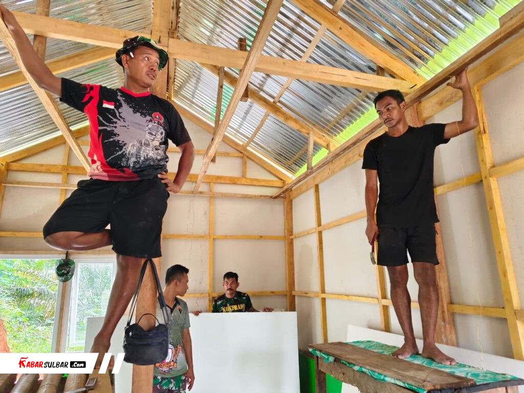 Mamuju Tengah — Pembangunan rumah layak huni bagi Pak Bubung (45) di Dusun Rawa Makmur, Desa Saloadak, Kecamatan Tobadak, kini memasuki tahap finishing. Program ini merupakan bagian dari TNI Manunggal Membangun Desa (TMMD) ke-125 yang dilaksanakan oleh Kodim 1418/Mamuju, Sabtu (16/8/2025).