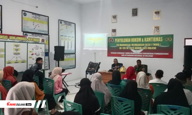 Majene — Program TNI Manunggal Membangun Desa (TMMD) ke-126 Kodim 1401/Majene kembali menunjukkan komitmennya dalam membangun masyarakat desa, tidak hanya lewat pembangunan infrastruktur, tetapi juga melalui kegiatan nonfisik berupa penyuluhan hukum dan keamanan masyarakat (Kamtibmas) yang digelar di Kantor Desa Balombong, Kecamatan Pamboang, Kabupaten Majene, Jumat (31/10/2025).