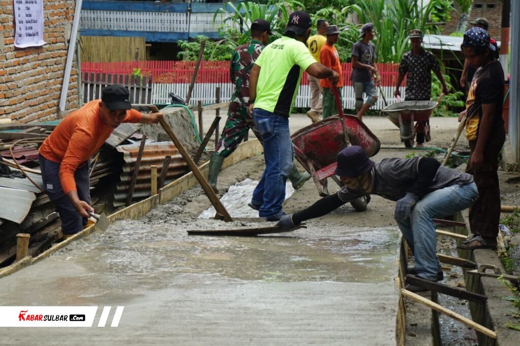 Suasana kebersamaan terlihat jelas di lokasi. Anggota TNI dan masyarakat bahu membahu mengaduk, mengangkut, dan meratakan adukan semen di sepanjang jalan. Tetesan keringat menjadi saksi nyata semangat kemanunggalan TNI dengan rakyat dalam mempercepat pembangunan di wilayah pelosok.
