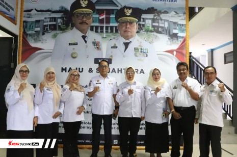 Rombongan Sekda Sulbar disambut langsung oleh Kepala Dinas Sosial, P3A dan PMD Sulbar, Darmawati, didampingi jajaran pejabat struktural dan staf di lingkungan dinas.