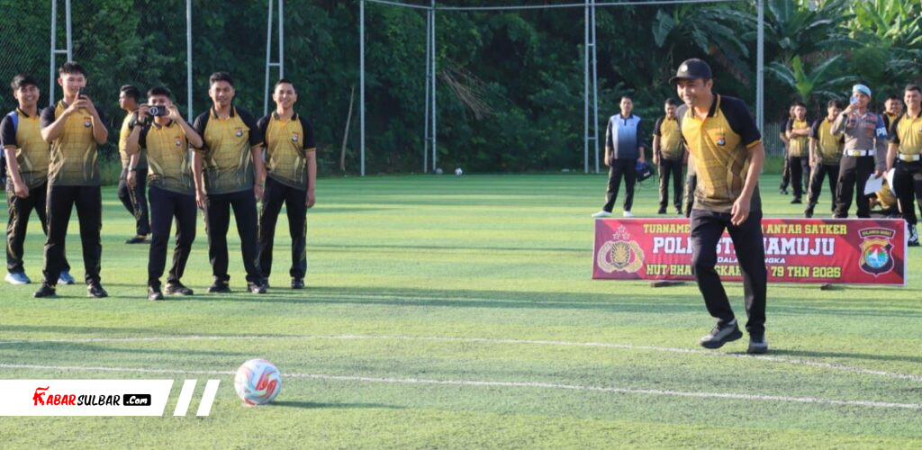 Mamuju – Semarak peringatan Hari Bhayangkara ke-79, Polresta Mamuju menggelar turnamen mini soccer antar internal Polresta Mamuju.