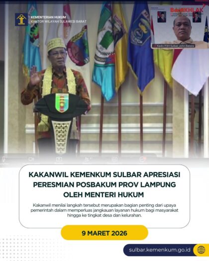 Kakanwil Kemenkum Sulbar Apresiasi Peresmian Posbakum Prov Lampung Oleh Menteri Hukum