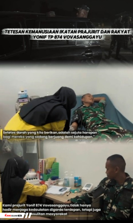 Pasangkayu, Kabarsulbar.com – Di balik seragam loreng yang gagah dan kedisiplinan yang kaku, denyut nadi pengabdian prajurit Batalyon Infanteri TP 874 Vovasanggayu tetap berakar pada satu hal: kemanusiaan. Melalui program bertajuk “Tetesan Kemanusiaan,” para prajurit Vovasanggayu kembali membuktikan bahwa kekuatan militer yang sesungguhnya terletak pada eratnya ikatan dengan rakyat.
