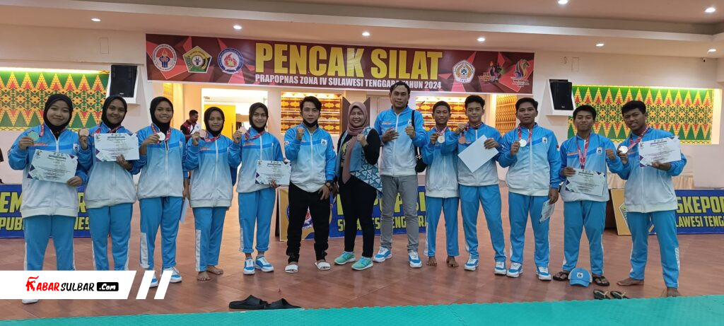 Kendari — Tim Pencak Silat Provinsi Sulawesi Barat berhasil menyumbangkan 2 Medali Perak Kategori Jurus Beregu Putra dan Putri, 4 medali Perunggu, Kategori Ganda Putra dan Putri, Jurus seni Tunggal Putra dan medali Perunggu kategori tanding kelas C Putra, di Kendari, Sabtu, 23 November 2024.
