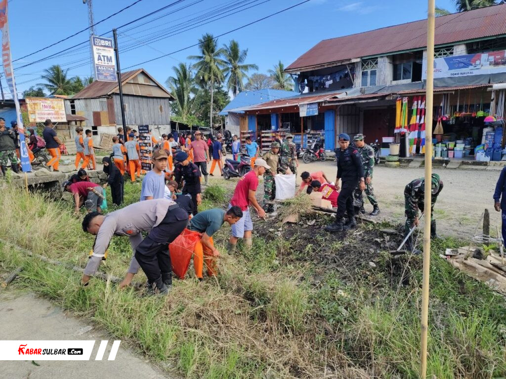 Mamuju Tengah – Dalam rangka menyambut HUT ke-80 Republik Indonesia sekaligus mendukung pelaksanaan TMMD ke-125, personel Kodim 1418/Mamuju bersama instansi terkait se-Kecamatan Tobadak melaksanakan karya bakti membersihkan Pasar Tobadak, Jumat (15/8/2025).
