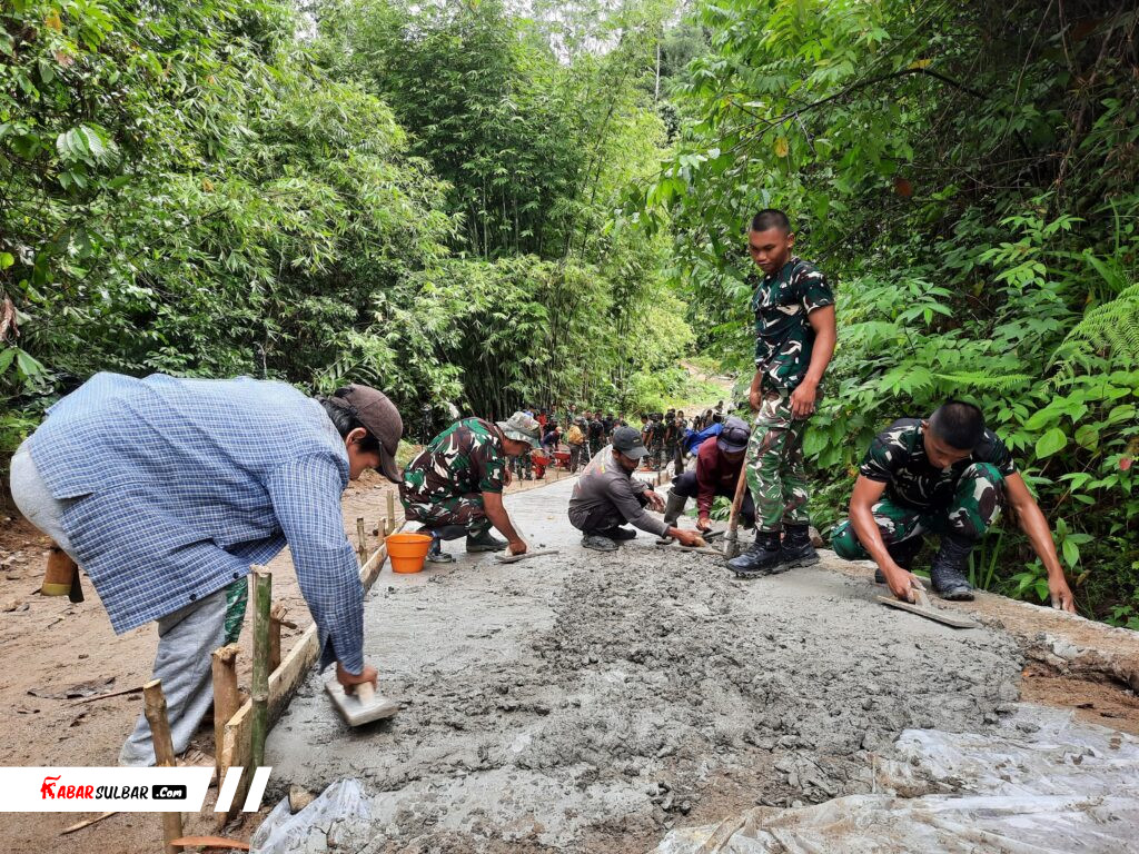 Polewali Mandar – Satua Tugas TNI Manunggal Membangun Desa (TMMD) ke-127 Kodim 1402/Polman mempercepat pengerjaan rabat beton sepanjang 500 meter dengan lebar 4 meter pada ruas Jalan Poros Bulo menuju Lenggo, Kabupaten Polewali Mandar.