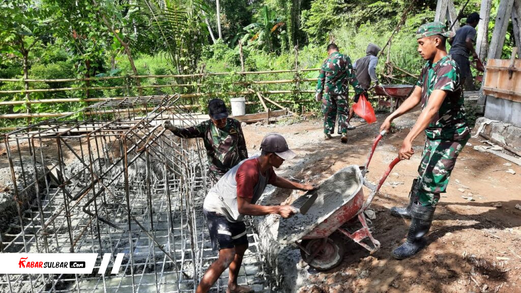 Danramil 1402-02/Wonomulyo, Kapten Inf Subarkah, mengatakan bahwa proses pengecoran saat ini terus dilakukan secara bertahap di kedua sisi jembatan.