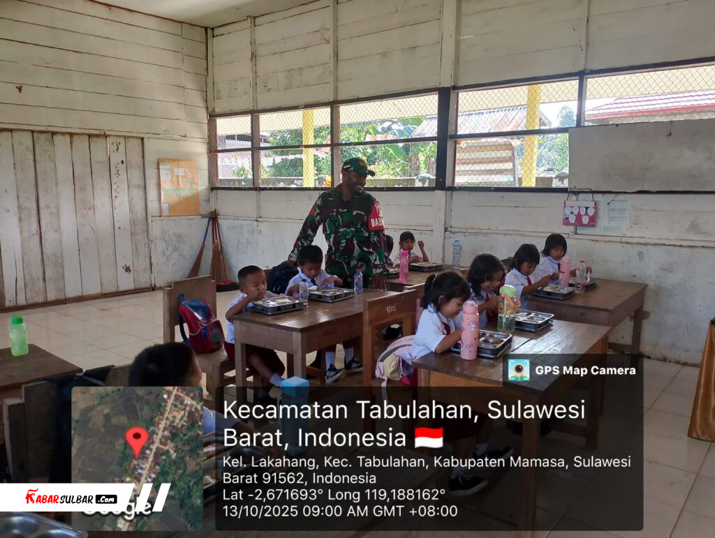 Mamasa, – Babinsa Koramil 1428-03/Mambu, melaksanakan kegiatan Monitoring Makan Bergizi Gratis (MBG) untuk anak-anak sekolah tingkat TK, SD, dan SMP di wilayah Kelurahan Lakahang Kecamatan Tabulahan Kabupaten Mamasa, Senin 13/10/2025