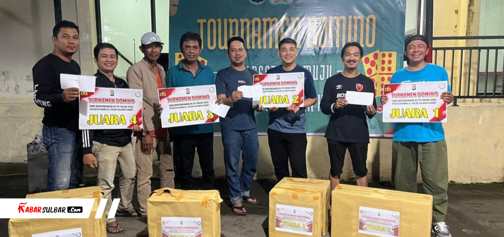 Mamuju – Dengan menyambut dan memeriahkan Hari Bhayangkara ke-79, Polresta Mamuju gelar Turnamen Domino yang diselenggarakan pada Sabtu malam, 21 Juni 2025, bertempat di Mapolresta Mamuju.