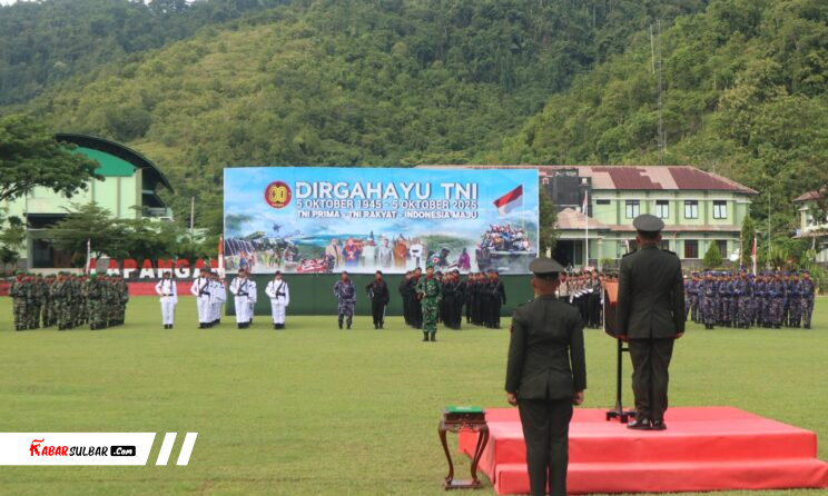 Mamuju – Dalam rangka memperingati Hari Ulang Tahun (HUT) ke-80 Tentara Nasional Indonesia (TNI) Tahun 2025 dengan tema “TNI Prima – TNI Rakyat – Indonesia Maju”, Korem 142/Tatag melaksanakan upacara peringatan di Lapangan Tammajarra Makorem 142/Tatag, Jl. Abdul Malik Pattana Endeng, Kelurahan Rangas, Kecamatan Simboro, Kabupaten Mamuju, Sulawesi Barat, Minggu (5/10/2025).
