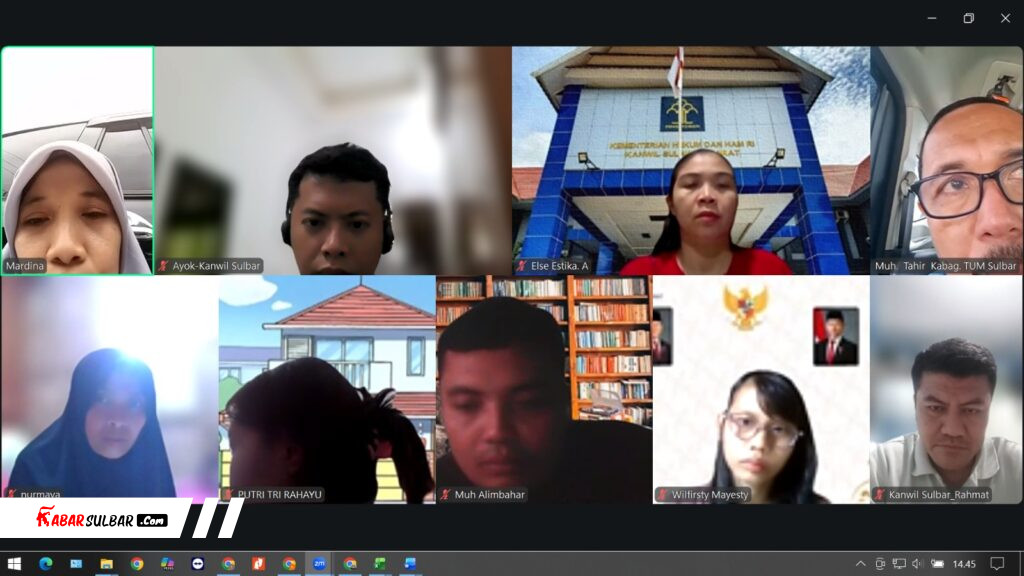 Mamuju, 25 Maret 2026– Kantor Wilayah Kementerian Hukum Sulawesi Barat (Kanwil Kemenkum Sulbar) menggelar rapat koordinasi. Pelaksanaan kegiatan itu membahas terkait layanan administratif dan fasilitatif yang dilaksanakan secara virtual yang dihadiri oleh Kabag TUM, Muh. Tahir dan jajaran.