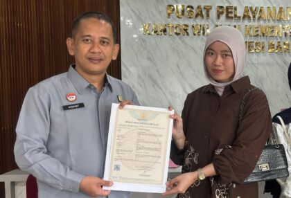 Kanwil Kemenkum Sulbar Serahkan Sertifikat Hak Cipta Dua Orang Mahasiswa Unika