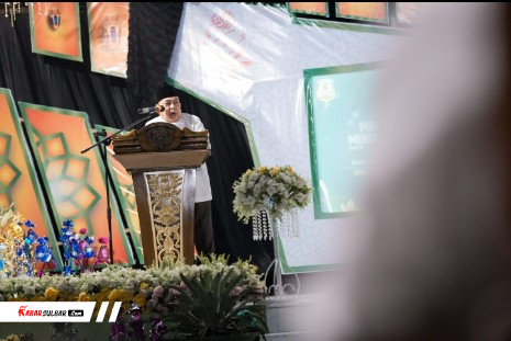 Wakil Gubernur Sulbar dalam sambutannya menyampaikan bahwa peringatan Maulid Nabi bukan sekadar mengenang kelahiran Rasulullah SAW, tetapi juga momentum meneladani perjuangan beliau dalam menebarkan kasih sayang, kejujuran, dan keikhlasan.