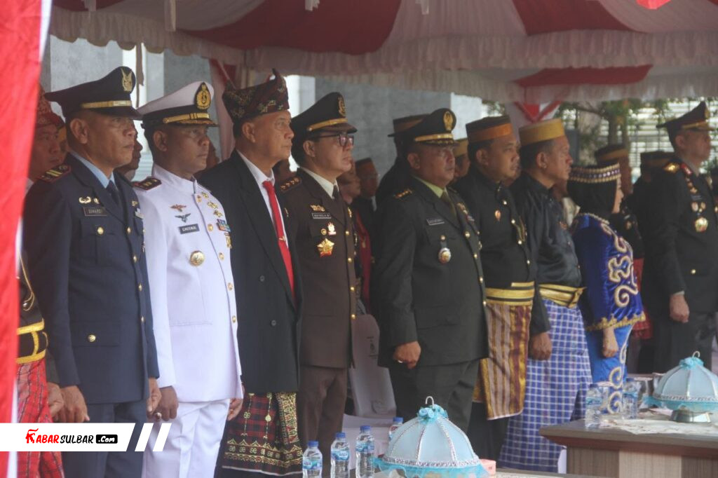 Bertindak selaku Pembina Upacara, Gubernur Sulawesi Barat DR. H. Suardi Duka, MM. Upacara turut dihadiri oleh unsur Forum Koordinasi Pimpinan Daerah (Forkopimda) Sulawesi Barat, para Kepala Instansi Vertikal di lingkungan Provinsi Sulbar, para Asisten Gubernur, Kepala Perangkat Daerah Provinsi Sulbar, serta tamu undangan lainnya.