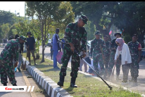 Mamuju – Dalam rangka memperingati World Cleanup Day Indonesia, personel Kodim 1418/Mamuju melaksanakan karya bakti bersama unsur Polri dan Forkopimda Kabupaten Mamuju. Kegiatan ini dipusatkan di sepanjang jalan arteri Kota Mamuju hingga area pesisir pantai, Sabtu (19/9/2025).